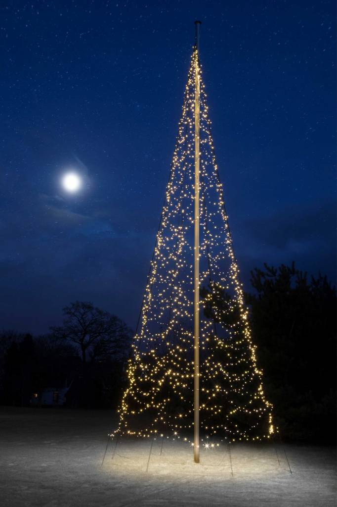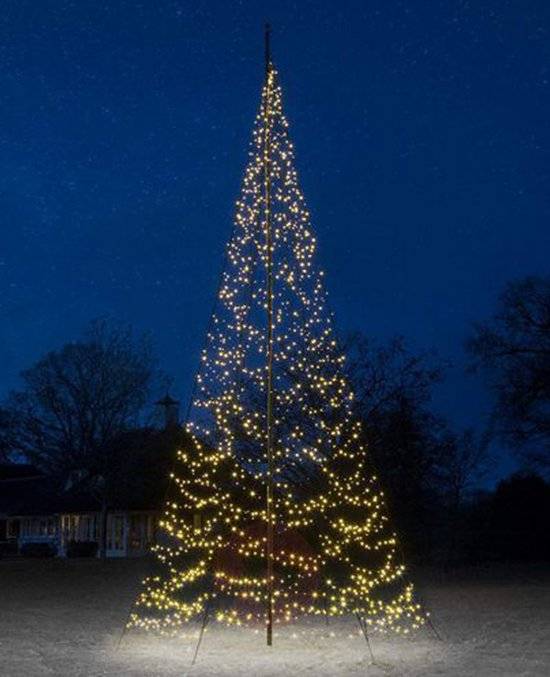 Versier uw tuin tijdens de kerstperiode met de mooie Fairybell Outdoor Christmas LED Trees. Deze Fairybell kerstboom met 640 LED lampjes in de kleur warm wit is 4 meter hoog. De onderkant van de boom heeft een diameter van 2 meter. De kerstboom is opgebouwd uit een aantal verticale banden met daaromheen de lichtstrengen. De lichtstrengen worden aangesloten op een 24 volt weerbestendige transformator die makkelijk op het stroomnet kan worden aangesloten. De Fairybell kerstboom is eenvoudig omhoog te hijsen langs een vlaggenmast en kan zonder trapladder bevestigd worden.