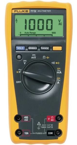 - De Fluke 77-IV digitale multimeter beschikt over de functies die u nodig hebt om de meeste elektrische en elektronische problemen op te lossen. Deze meter is eenvoudig te gebruiken en is aanzienlijk verbeterd ten opzichte van de oorspronkelijke 70-serie van Fluke. Zo heeft deze meter meer meetfuncties, voldoet hij aan de meest recente veiligheidsnormen, en heeft hij een veel groter display dat gemakkelijker is af te lezen.