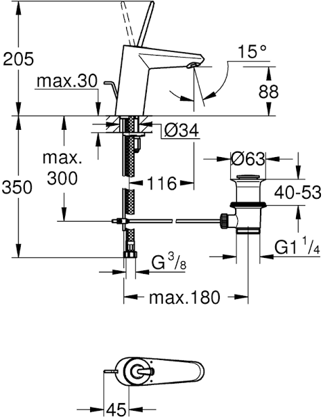 Deze kraan uit de Eurodisc Joystick serie valt op in de badkamer door zijn strakke lijnen en robuuste Moon White beschermlaag. Ook opvallend zijn de praktische kwaliteiten van de kraan. Zo kan dankzij GROHE SilkMove® soepel en nauwkeurig de temperatuur en het watervolume bepalen. GROHE EcoJoy® zorgt voor een maximale doorstroom van 5,7 l water per minuut wat gunstig is voor het milieu en de portemonnee. Door het GROHE QuickFix® Plus montagesysteem is de installatie van de kraan kinderspel en staat SpeedClean garant voor een makkelijk en snel onderhoud. Kalkaanslag veegt men vanaf nu gewoon weg met een beweging van de vinger.