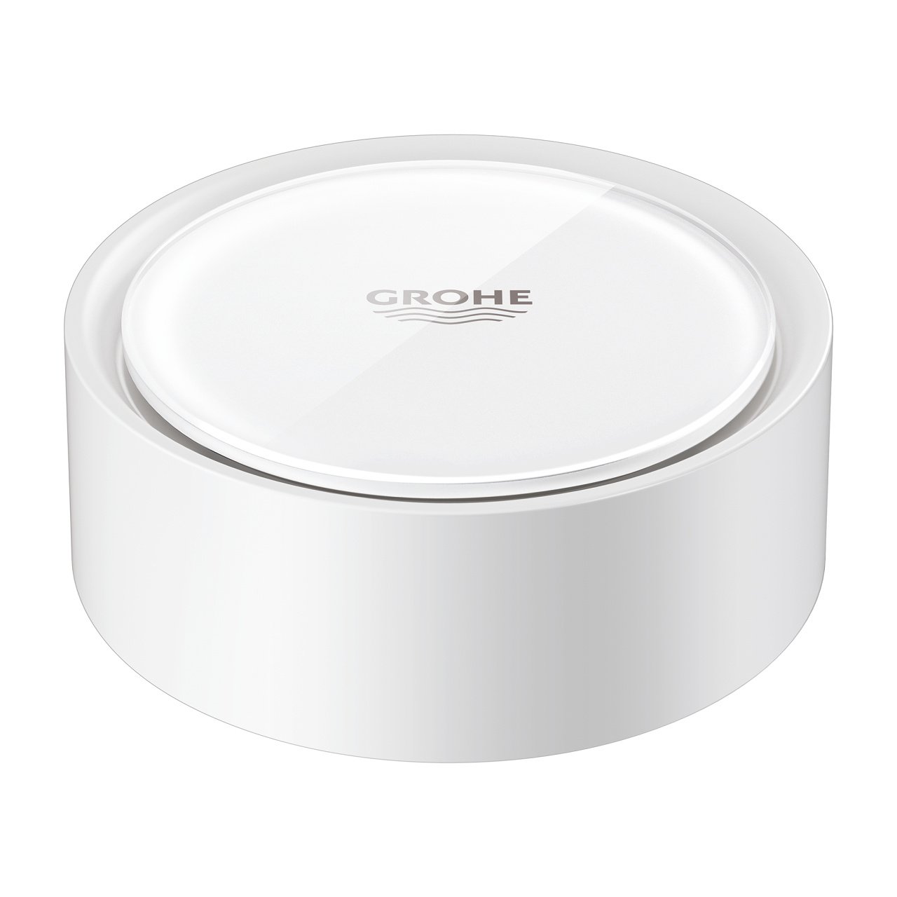 Welkom bij GROHE Sense, de innovatieve watersensor! Dit prachtig gemaakte apparaat dat werkt op batterijen detecteert het eerste teken van overstroming en kan zelfs de temperatuur en vochtigheid meten en is daarom perfect voor veelgebruikte ruimtes zoals badkamers en keukens. Zodra het ongewenst water detecteert, knippert er een rood lampje op de glanzende acrylplaat en klinkt er een zoemer zodat je snel actie kunt ondernemen. En omdat het een Wi-Fi-verbinding heeft, stuurt het een waarschuwing naar je smartphone door middel van een pushmelding via de app of via de e-mail.