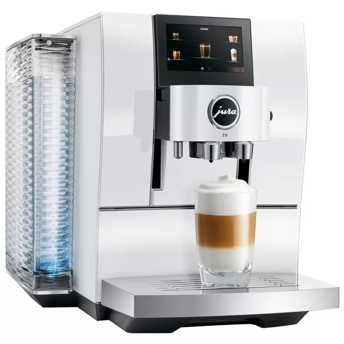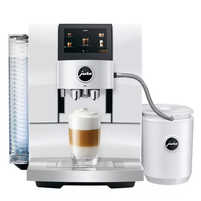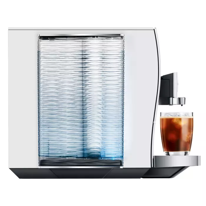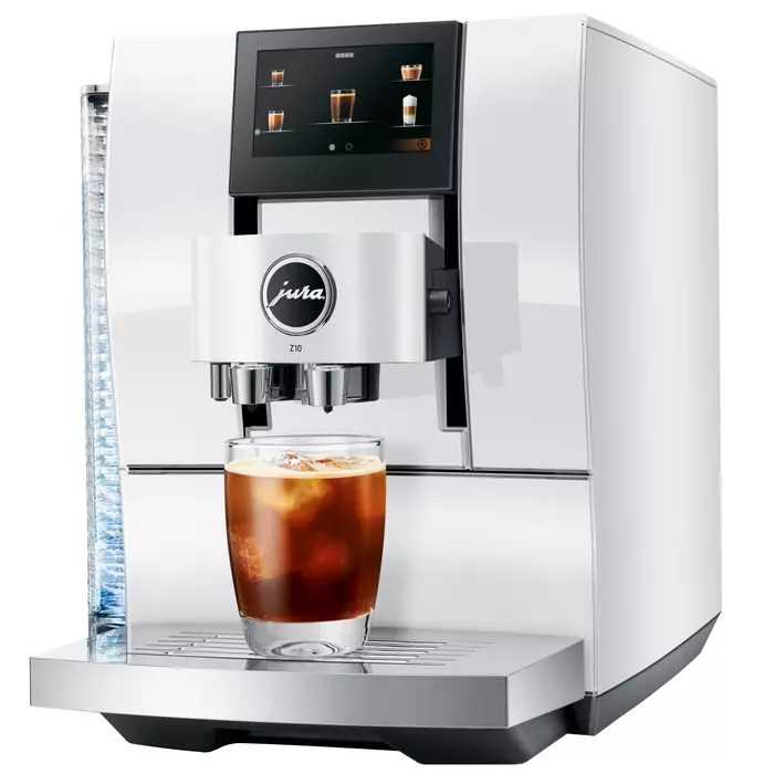 Met de JURA Z10 Aluminium White (EA) zet je niet alleen veel verschillende warme koffies, maar je zet ook ijskoffies met één druk op de knop. Zo zet je naast de klassieke koffiespecialiteiten een cold brew. Dankzij het Cold Extraction Process perst de koffiemachine koud water onder hoge druk door de versgemalen koffie. Dit zorgt voor een verfrissende koffie, waarbij de aroma's goed vrijkomen. De slimme bonenmaler herkent de gekozen koffiespecialiteit en past de maalfijnheid daarop aan. Zo stel je zelf niet de maalgraad in. Wil je toch liever zelf de sterkte instellen? Dan doe je dat gemakkelijk via het touchscreen display. Via de meegeleverde Wifi Connect bedien je de koffiemachine ook via de app.