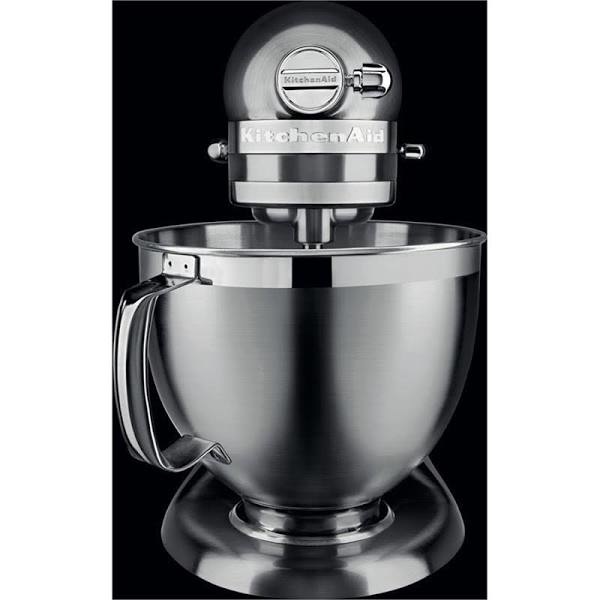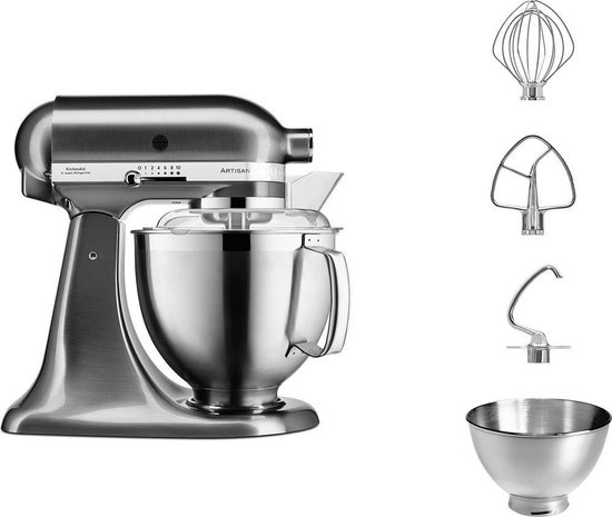 Deze Artisan keukenmachine 5KSM185 van KitchenAid is uitgevoerd in de kleur Tintgrijs en is uitgerust met een 4,8 liter roestvrijstalen mengkom met kantelbare kop.