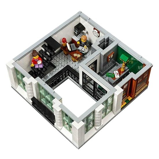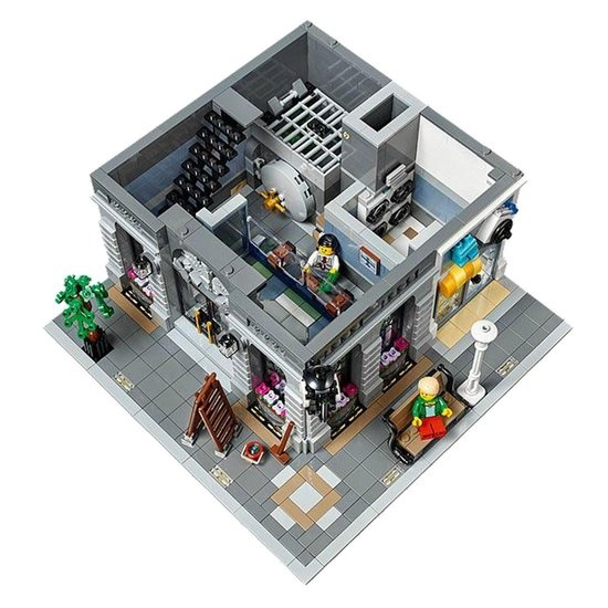 Verzamel en bouw een complete stad door de set te combineren met andere sets uit de LEGO® Creator Modular Buildings-serie: het Parijse restaurant (productnr. 10243) en het Detectivekantoor (productnr. 10246). Bij de set horen 5 minifiguren: een bankdirecteur, een secretaresse, een kassier, een moeder en een kind.