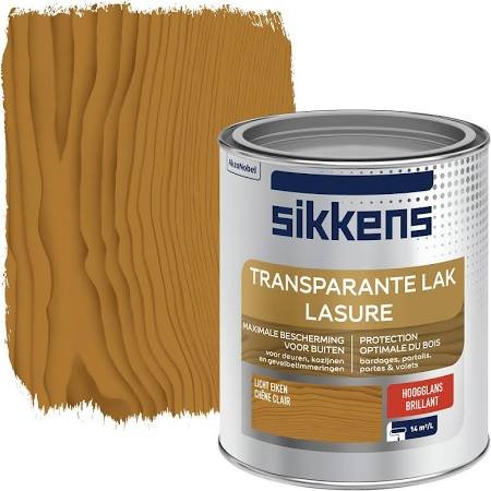 Sikkens buitenlak transparante hoogglans licht eik 750 ml is een hoogglans aflak op basis van alkydhars die u voor buiten kunt gebruiken. U kunt het met de kwast of met de roller aanbrengen op onder andere deuren en kozijnen. Sikkens Buitenlak Transparante Hoogglans is geschikt voor het aflakken van hout, staal, non-ferro metalen en diverse kunststoffen mits u ze voorziet van de juiste grondverf. Voor een perfect resultaat op uw houtwerk gebruikt u eerst Sikkens Grondlak.
